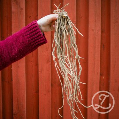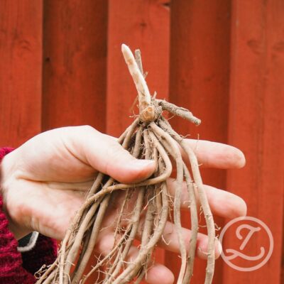 De barrotade plantorna består av en central rotkrage med flera tjocka, fingerliknande rötter. Vid plantering är det viktigt att rötterna sprids ut jämnt så att de kan växa fritt.