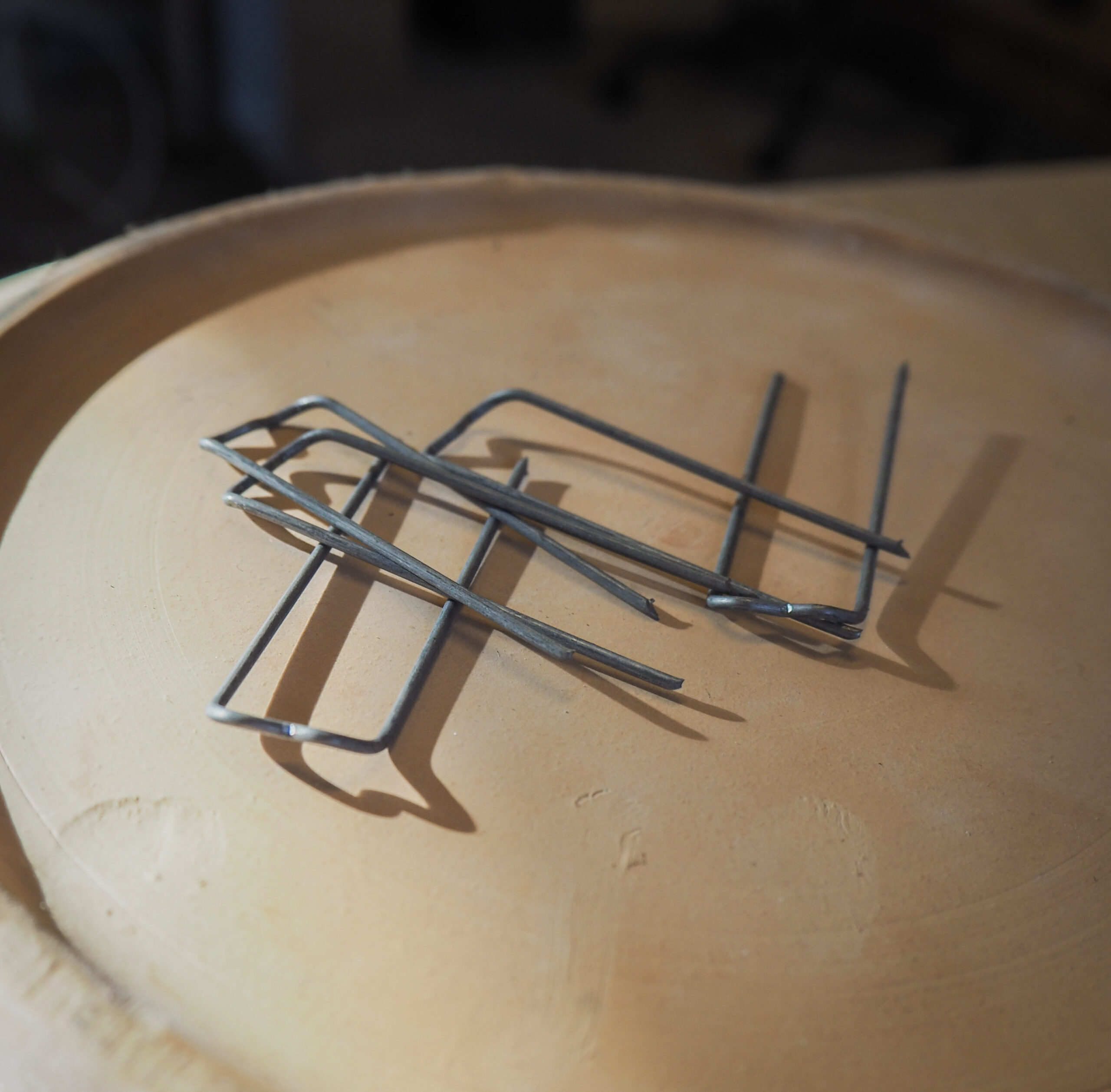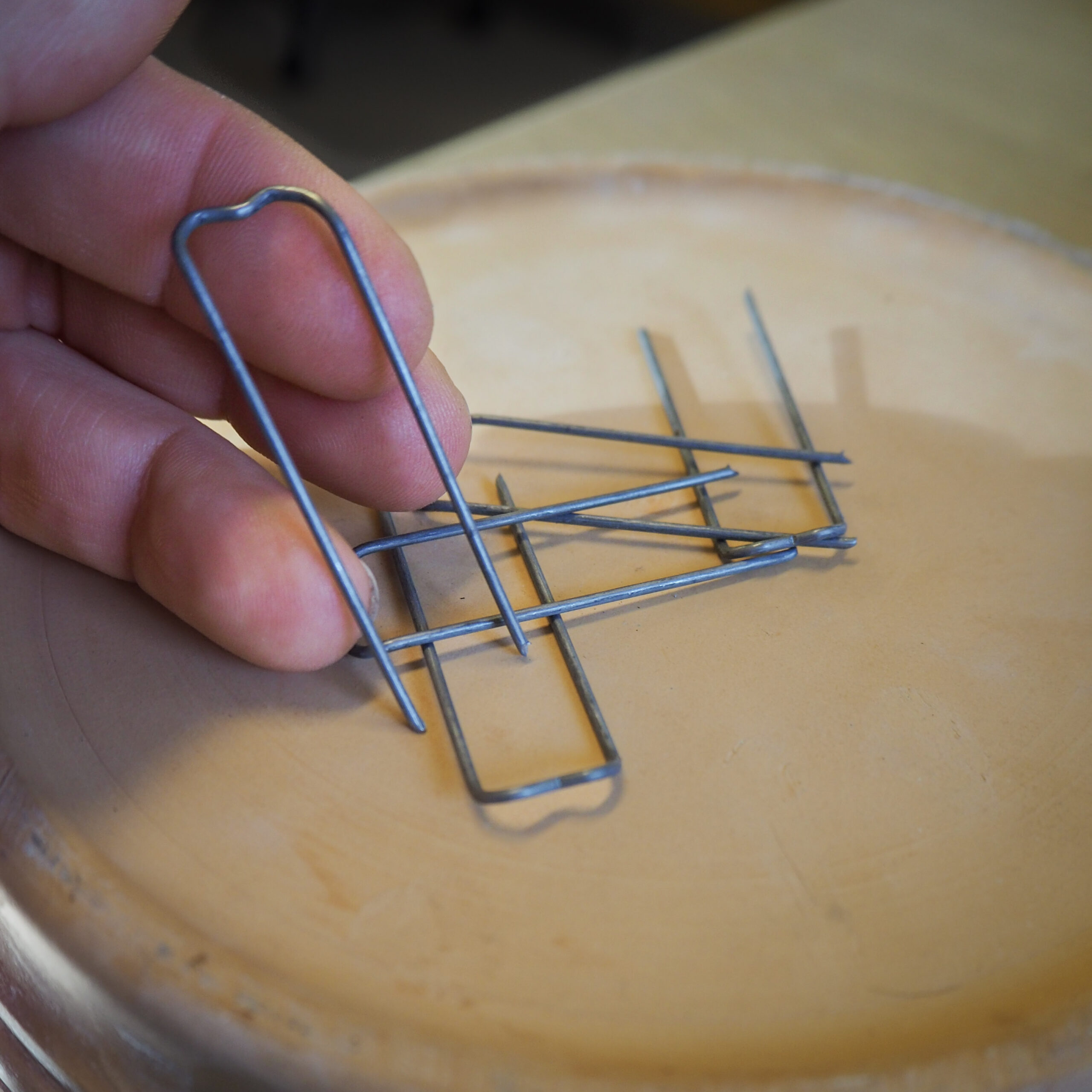 U-formade klamrar i järn för användning vid kransbindning och andra typer av arrangemang.