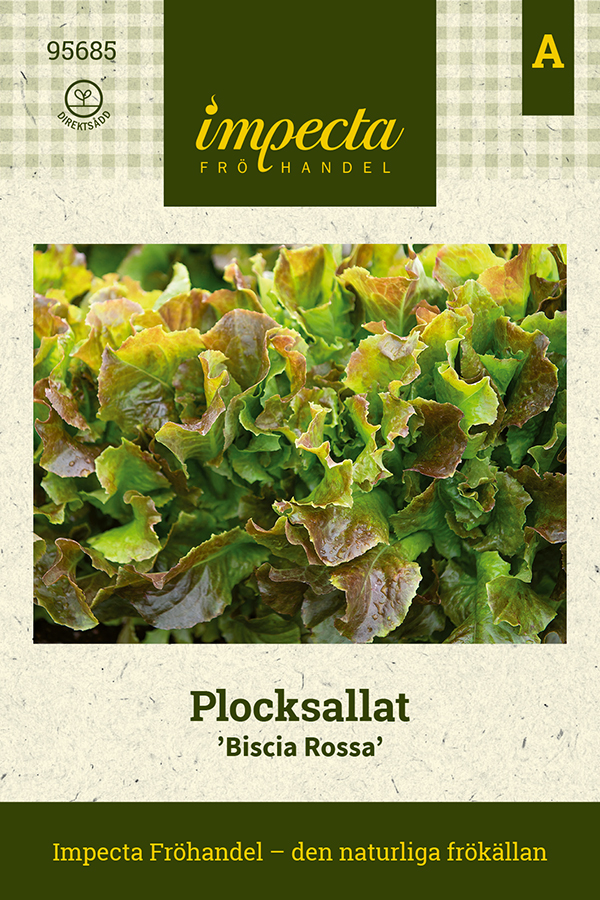 Rustik och vacker, tidig miniplocksallat med krispiga, gröna blad med röda krusiga kanter. Skördas bäst som babyleaf, men kan även få växa ut till stora, löst bundna huvuden. Välsmakande och dekorativ. Utvecklas bäst i svalare klimat och kan även odlas inomhus under hela året.