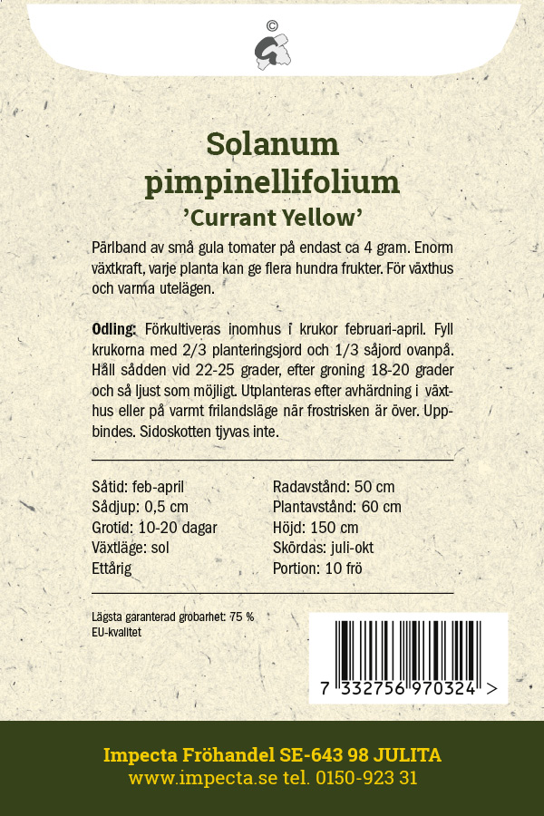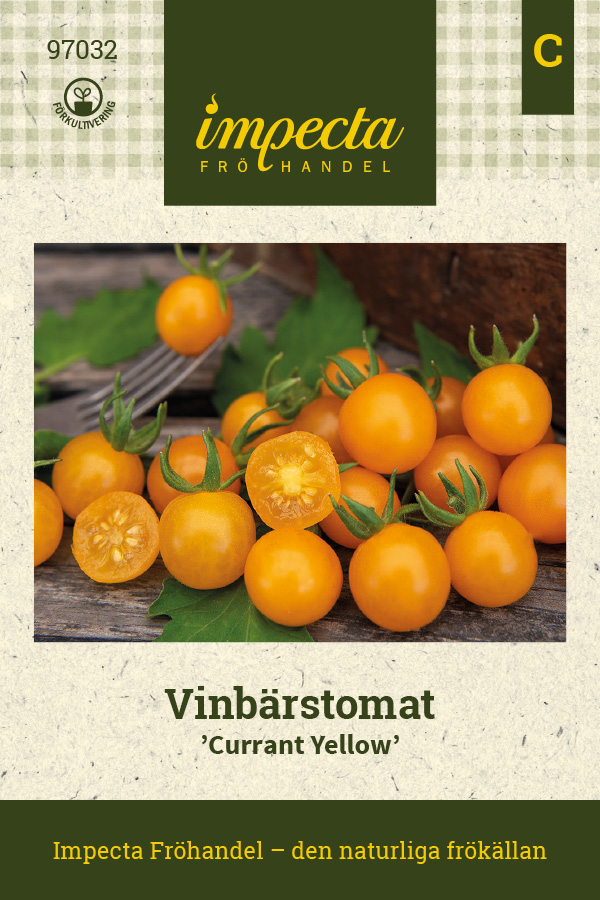 Pärlband av små gula tomater på endast ca 4 gram. Enorm växtkraft, varje planta kan ge flera hundra frukter. För växthus och varma utelägen.