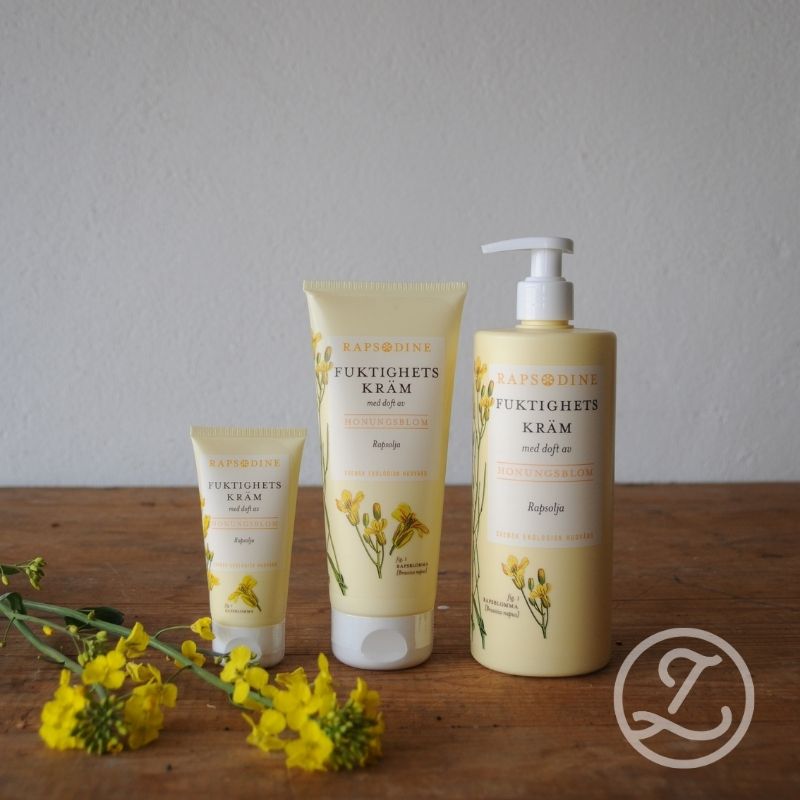 Rapsodines fuktighetskräm utnyttjar rapsoljans unika mjukgörande egenskaper och förmåga att bevara hudens naturliga fuktighet. Den kallpressade rapsoljan, tas lätt upp av huden och tillför näringsämnen i form av vitaminer, mineraler och hälsosamma fettsyror.
