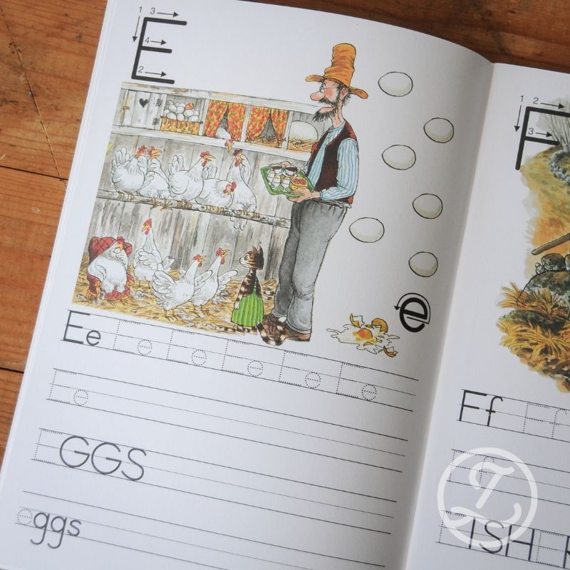 Pettson och Findus hjälper barn att lära sig engelska med hjälp av alfabetet och enkla ord.