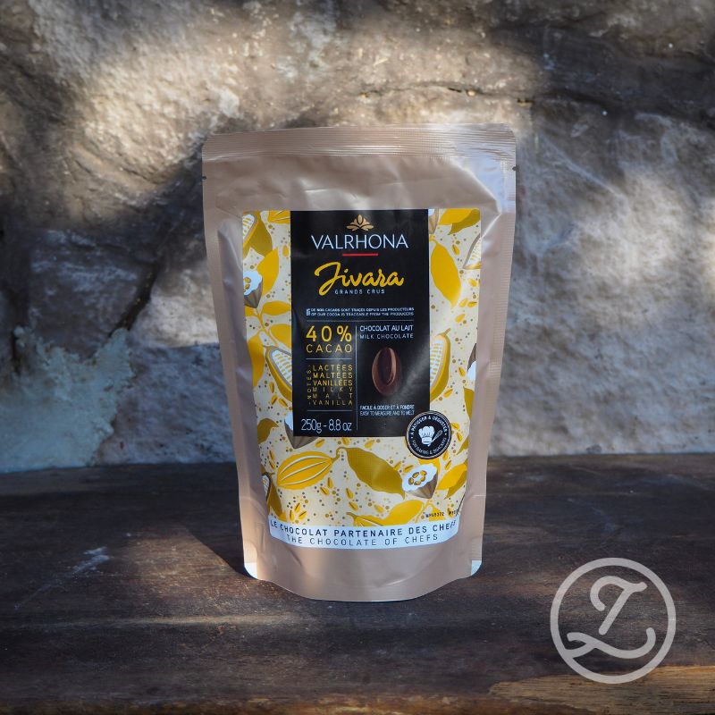 Jivara Lactée är en fyllig mjölkchokladkuvertür med 40 % kakao, tillverkad av Valrhona i Frankrike. Den tillhör Valrhonas klassikersortiment och har producerats enligt samma recept sedan 1995. Jivara Lactée är en del av serien ”Mariage de Grands Crus”, där Valrhona blandar ädelkakaobönor från olika ursprung för att skapa ett unikt smakdjup. I detta fall används enbart kakaobönor från Ecuador och Ghana.