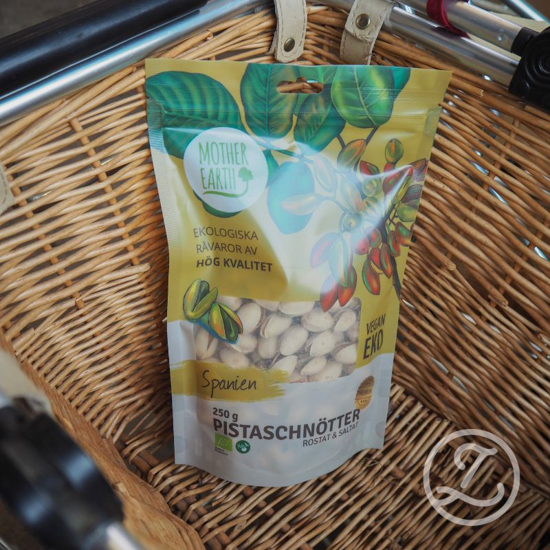 Ingredienser: Ekologiska pistaschnötter, saltade med skal