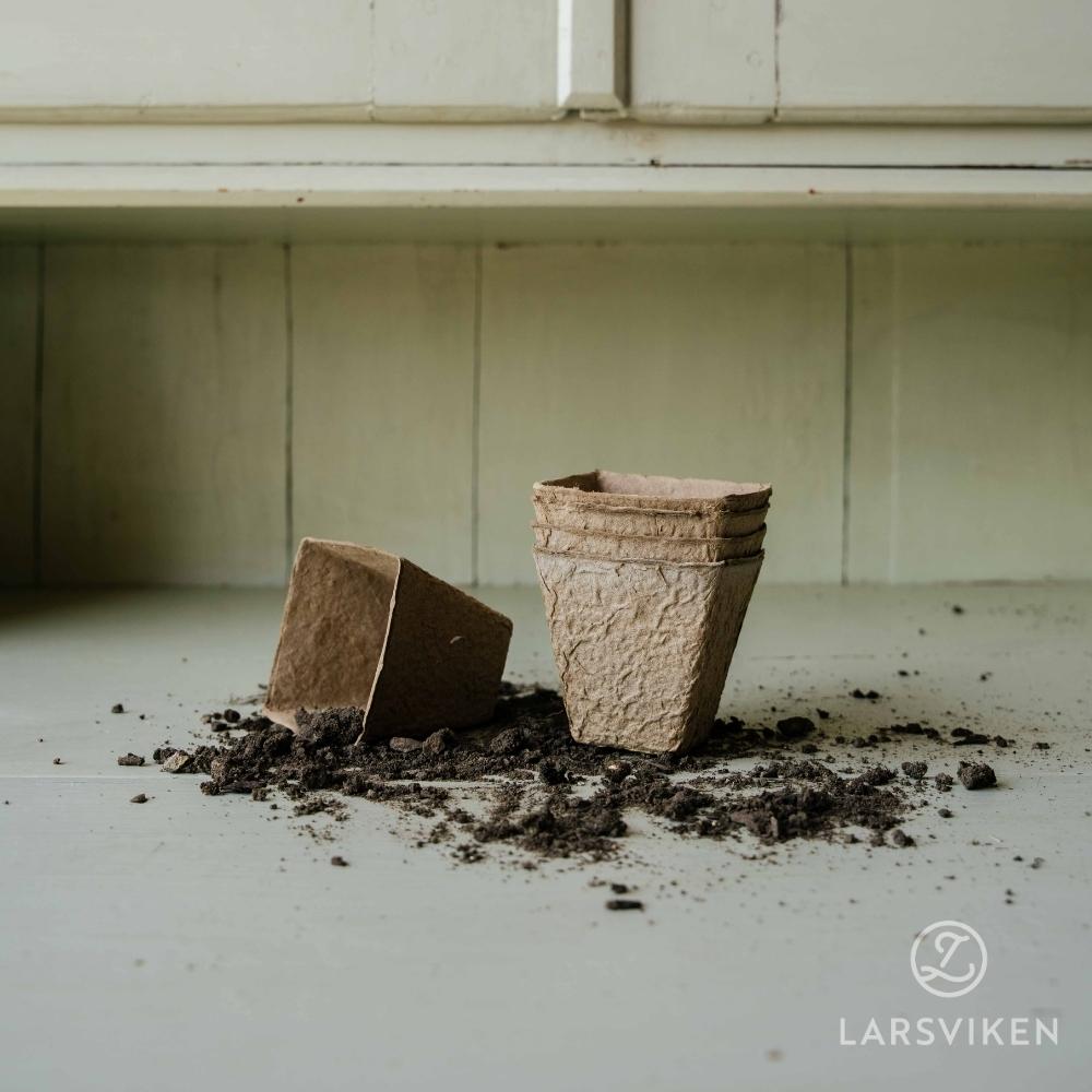 Praktiska förspiringskrukor i papper för frön och sticklingar.